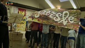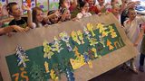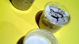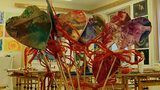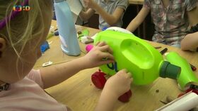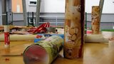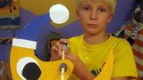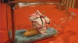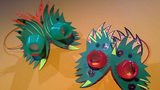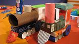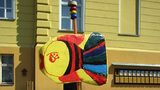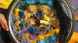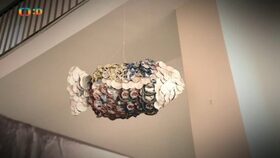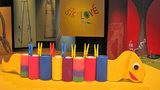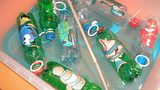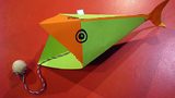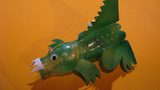 Obří ryba z víček od jogurtů a plechovek