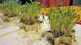 Zatravněný domeček z houby